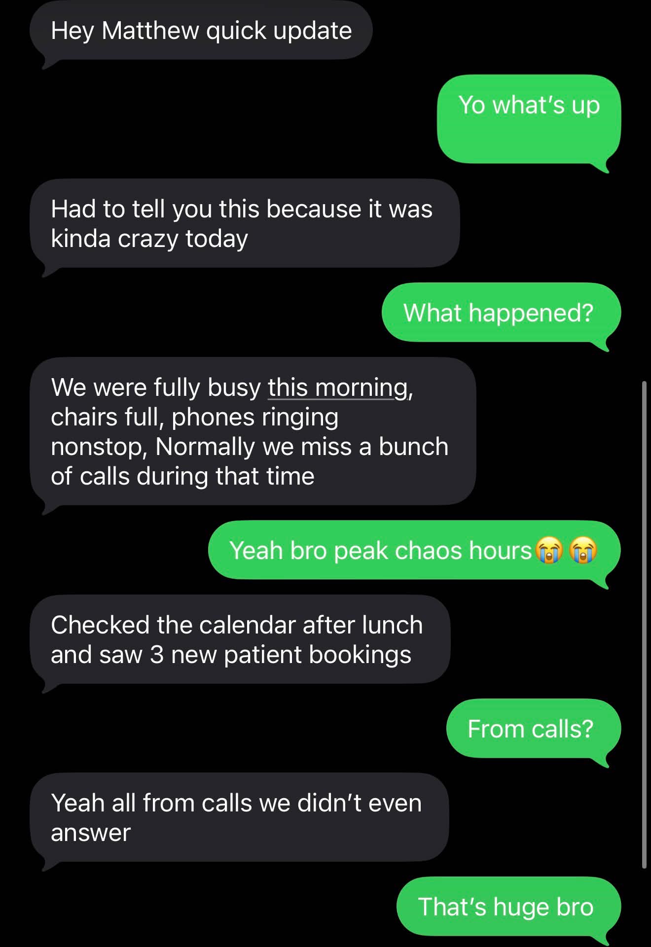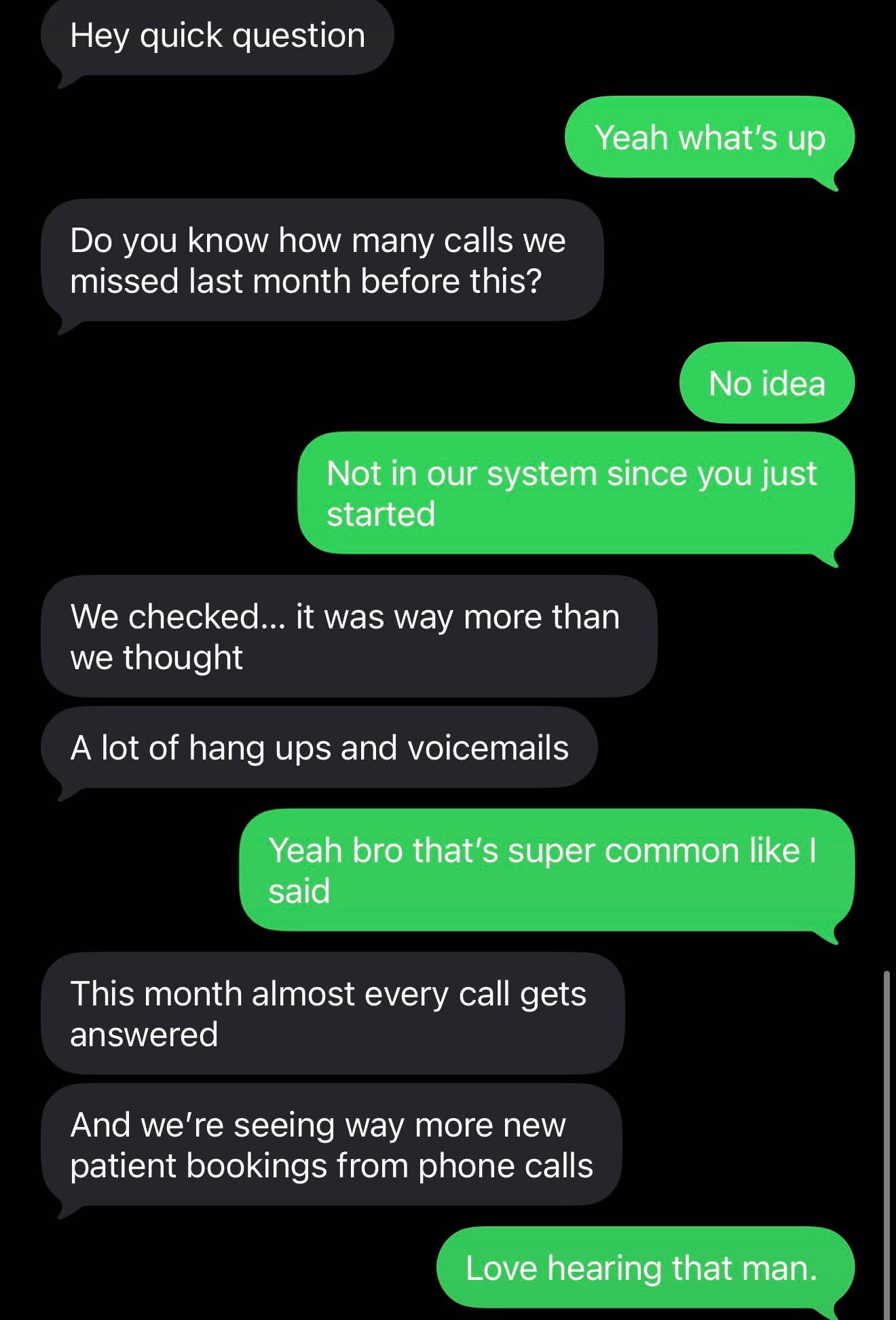 Our AI receptionist handles calls, books appointments, and ensures no patient gets missed — saving you time and headaches.
